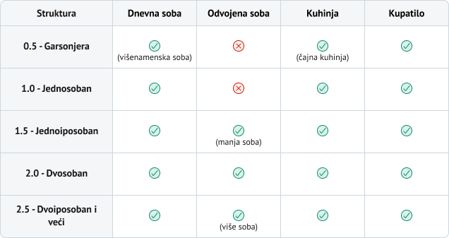 predstavljamo kratak vodič kroz strukturu stanova i značenje pojedinih termina.